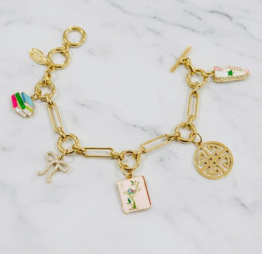 Pre-Order North Carolina Tarheels CANVAS Style 18k Gold Plated Charm Bracelet