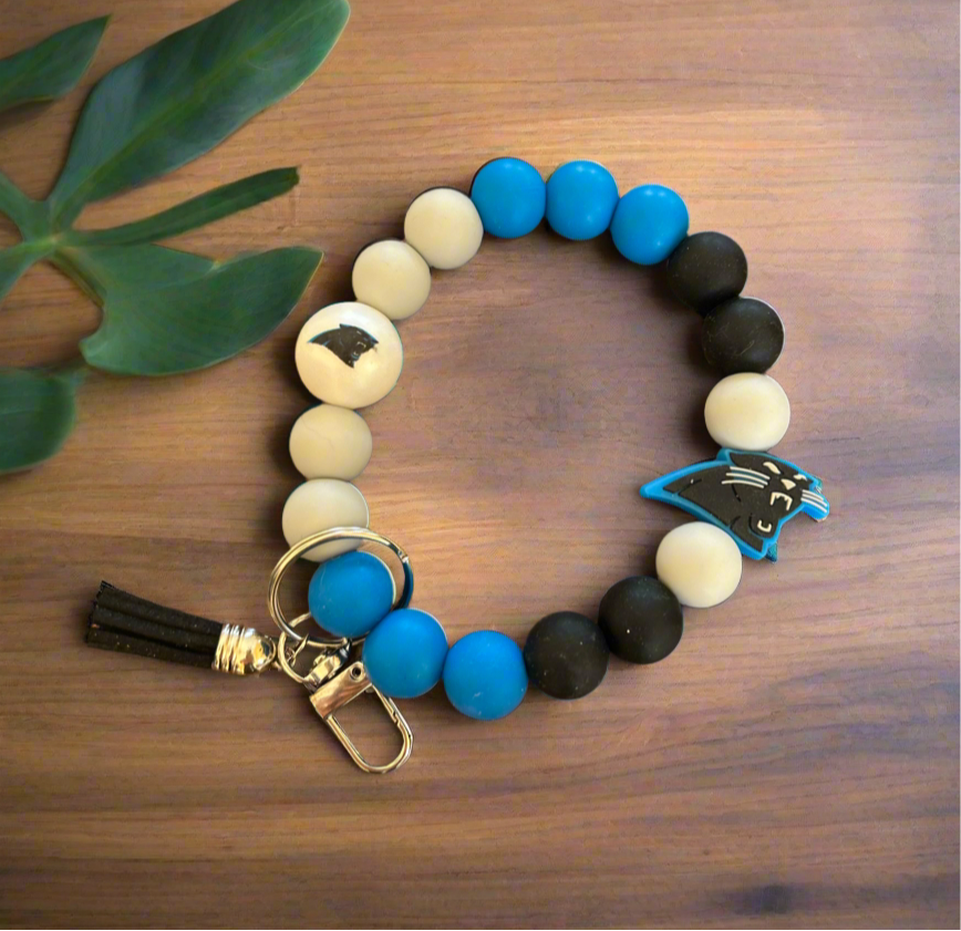 Carolina Panthers Silicone Beaded Key Chain Wristlet