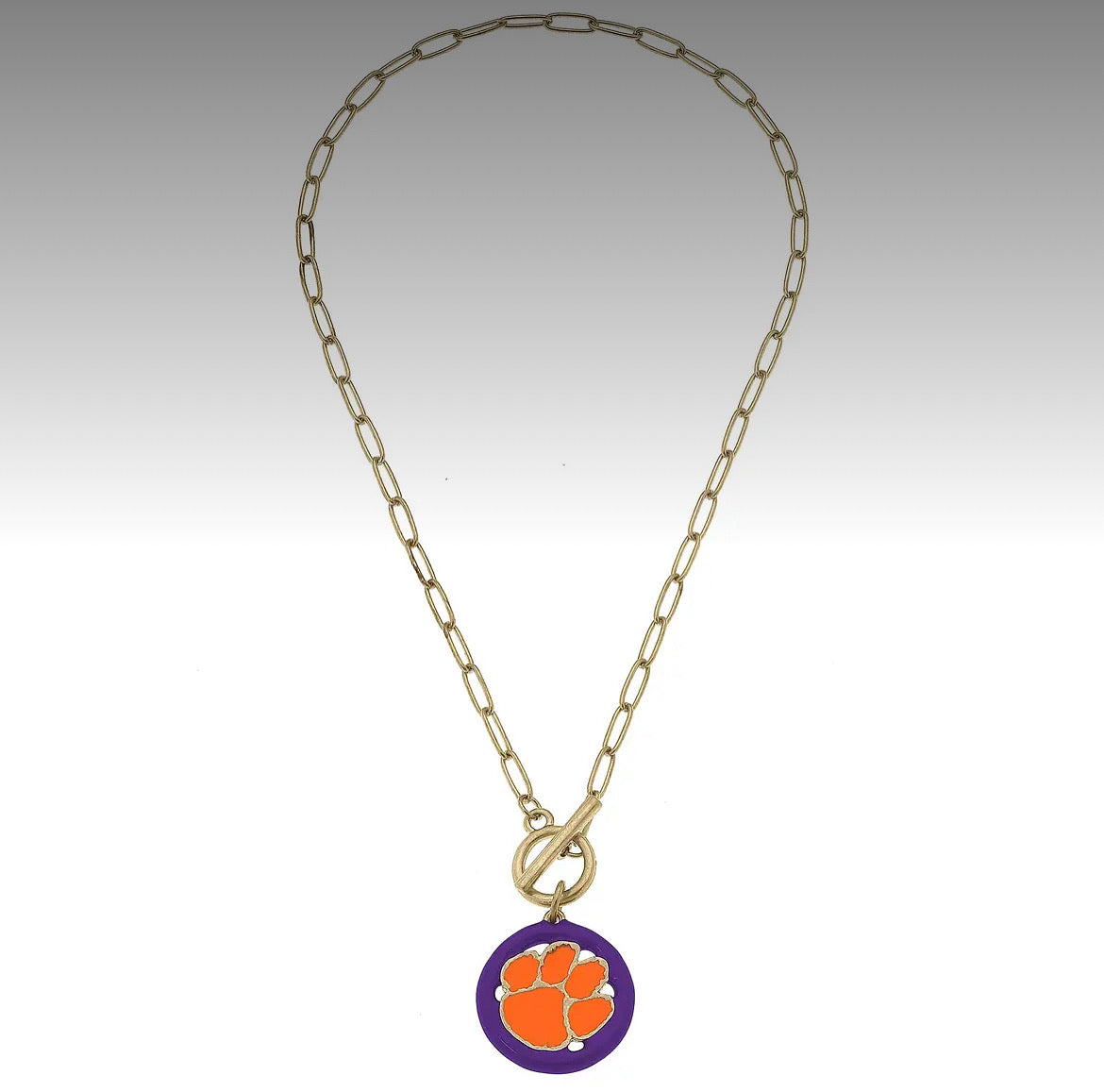 Show your loyalty to the Clemson University Tigers with this stylish enamel T-Bar necklace. The necklace proudly displays the Tigers' logo, making it the perfect accessory for any fan or alum. Made with durable materials, this necklace is a must-have for any Clemson supporter.