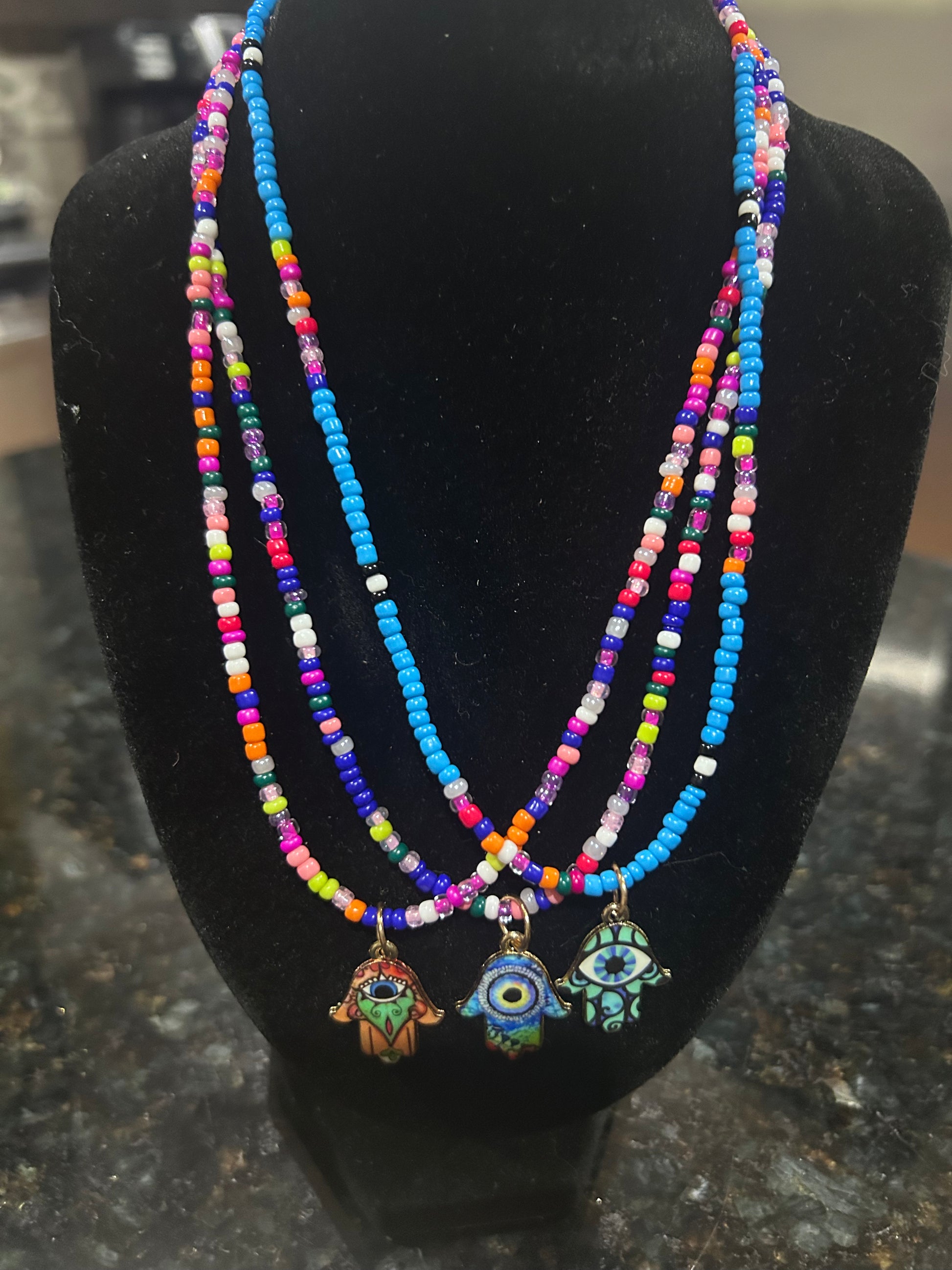 Custom Seed Beaded Hamsa Hand of Fatima Evil Eye Protection Necklace