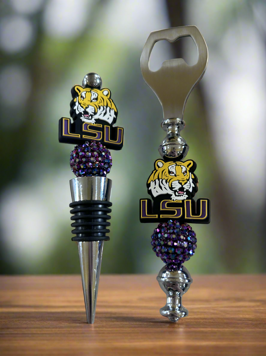 LSU Louisiana State University Custom Beaded Bottle Opener and Wine Stopper