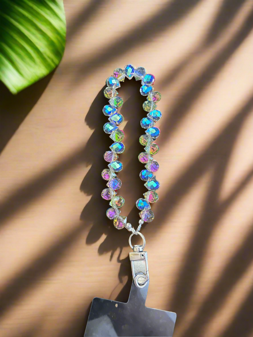 Stay organized and stylish with our Multicolored Crystal Beaded Mobile Phone Wristlet. Made with quality acrylic crystals, this wristlet is perfect for holding your phone while on-the-go. Keep your phone safe and easily accessible, all while adding a touch of elegance to your look.