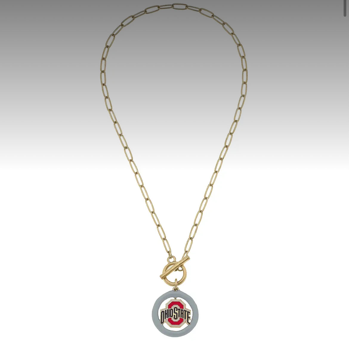 Ohio State University Buckeyes Logo Enamel T-Bar Necklace