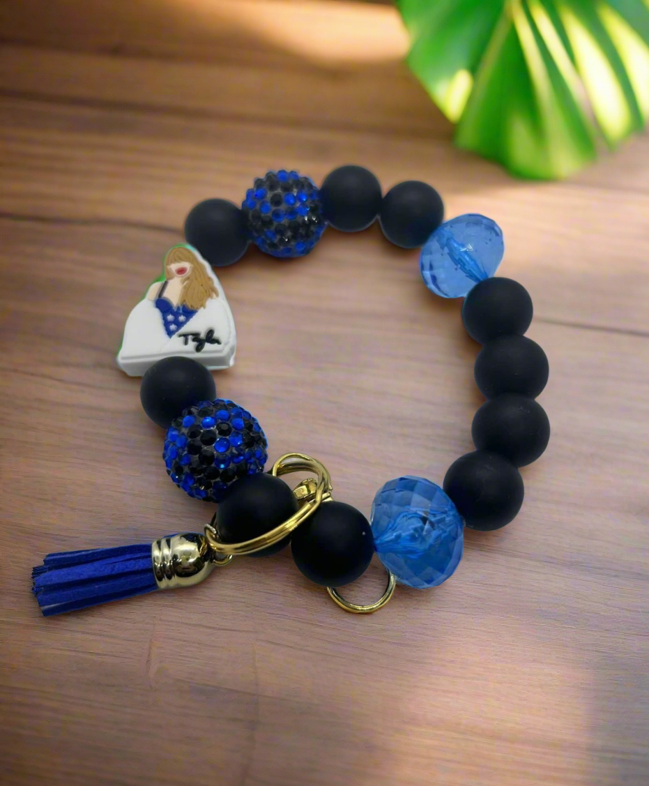 Taylor Swift Keychain Silicone Beaded Wristlet Blue/Black